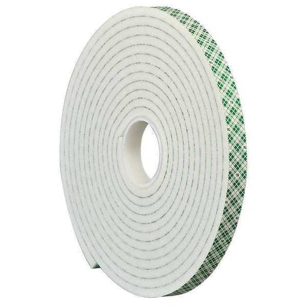 Double-Sided Foam Tape, 1 in W, 5 yd L, 1/4 in, Polyurethane Foam, Double-Sided