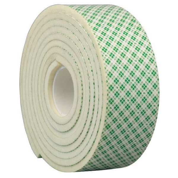 Double-Sided Foam Tape, 2 in W, 5 yd L, 1/4 in, Polyurethane Foam, Double-Sided