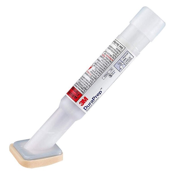 Clinically proven and cost-effective, this patient skin prepping solution meets AORN and CDC guidelines for the reduction of surgical site infections.Benefits Is 40% less expensive than ChloraPrep Patient Preoperative Skin Preparation per 26 mL applicator{1}Designed to be applied in a single, painted coat -- 2 log reduction -- abdomen at 10 minutes -- 3 log reduction -- groin at 10 minutes -- Both sites maintain counts below baseline out to 6 hours.Covers more than twice the area than ChloraPrep.According to labeling, a 26 mL applicator of ChloraPrep will cover an area 13.2 inches by 13.2 inches, or 174 square inches. In comparison, a 26 mL applicator of 3M DuraPrep Surgical Prepping Solution will cover 15 inches by 30 inches or 450 square inches.Has substantial clinical documentation including data in simulated surgical conditions -- 5 human safety studies -- 9 in vitro studies -- 8 in vitro studies -- 8 clinical in-use studies.