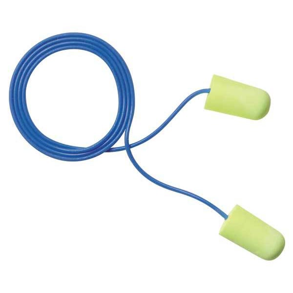 Ear Plugs, Noise Reduction Rating 33 dB, Earplug Shape Bullet, Insertion Method Roll-Down, Reusability Disposable, Cord Options Corded, Earplug Size L, Earplug Material Foam, Earplug Packaging Bulk Box, Earplug Pair Pack Type Plastic Bag, Electrically Insulated Yes, Band Color Blue, Series E-A-Rsoft(TM) Yellow Neons(TM), Cord Material Vinyl, Band Material Vinyl, Cord Color Blue, Standards 33 dB CSA Class AL, Pairs per Package 200, Earplug Color Yellow, Metal Detectable No, Package Quantity 200