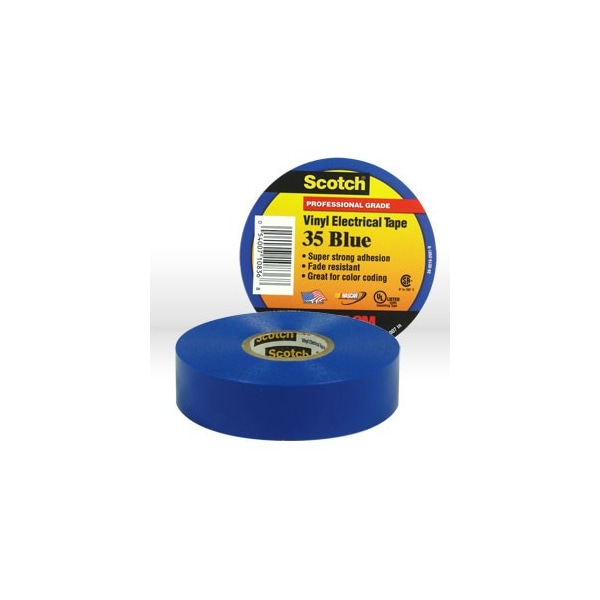 3M Electrical Tape, Type: Scotch vinyl electrical color coding tape 35, Color: Blue, Size: 3/4" x 66 ft (19 mm x 20.1 m), Packaging Qty: 100 per case