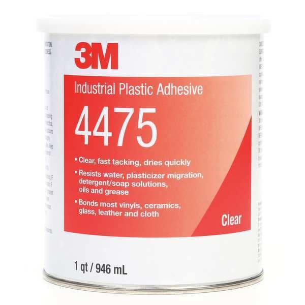 Construction Adhesive, Adhesive Color Clear, Application Method Hose, Pump, Chemical Base Synthetic Resin, Container Size 1 qt, Container Type Can, Features Flexible Bond, High Performance, Non Yellowing Formula, Quick Drying, Interior/Exterior Interior/Exterior, Working Time 10 min, VOC Content Weight Percentage 59 Percent, Water Resistance Water-Resistant, VOC Content Weight 561 g/L, Low Odor No, Materials Bonded Fabric, Glass, Leather, Plastic, Vinyl, Solvent-Free No, Series 4475