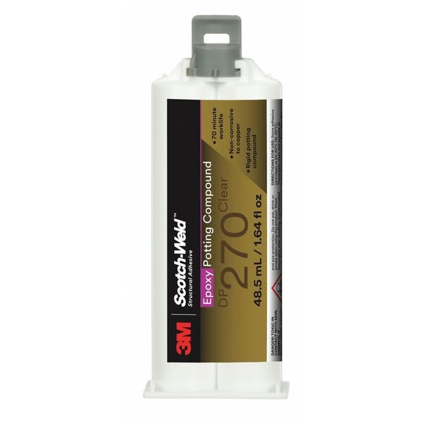 Epoxy Adhesive, DP270 Series, Gray, Dual-Cartridge, 1:01 Mix Ratio, 3 hr Functional Cure