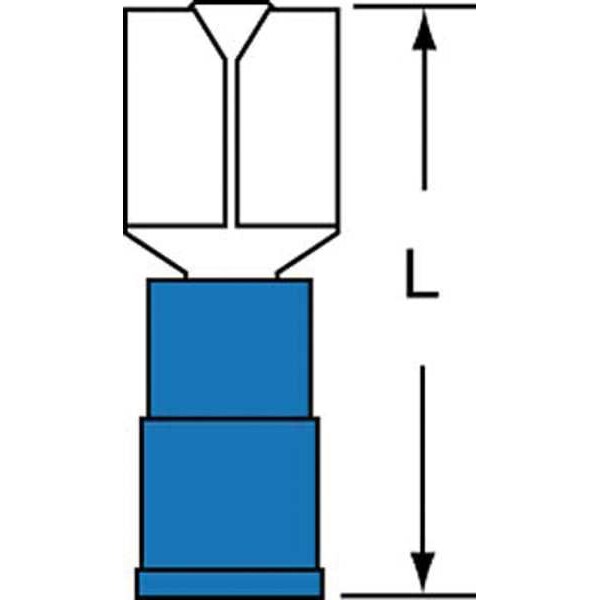 Female Disconnect, Insulation Color Blue, Terminal Type Disconnect, Standards CSA Certified, RoHS Compliant, UL Listed, Insulation Type Vinyl, Overall Length 0.83 in