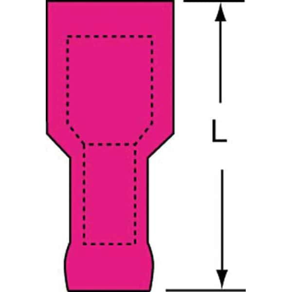 Wire Disconnect, Contact Finish Tin, Contact Material Brass, Disconnect Style Quick Disconnect, Insulation Color Red, Insulation Coverage Full Coverage, Insulation Material Nylon, Maximum Operating Temperature 221 Degrees F, Minimum Wire Size 22 AWG, Maximum Wire Size 18 AWG, Maximum Voltage 600 V, Tab Thickness 0.032 in, Tab Width 0.25 in, Terminal Type Socket, Termination Style Crimp, RoHS Compliant Yes, Seam Style Butted, Standards CSA Certified, UL Listed, Barrel Inside Diameter 0.08 in