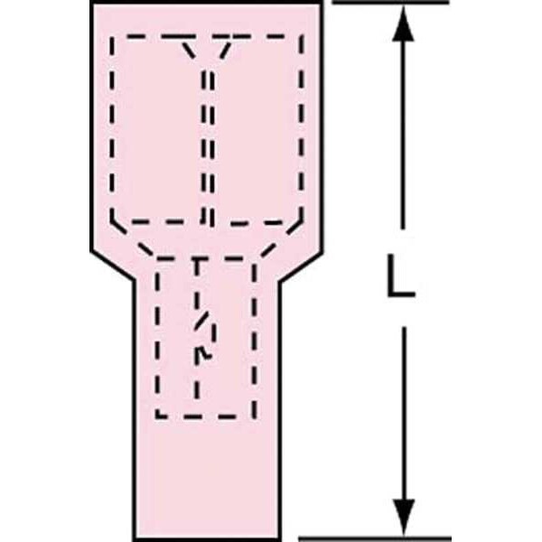 Female Disconnect, Contact Finish Tin, Contact Material Brass, Insulation Color Red, Insulation Coverage Full Coverage, Insulation Material Nylon, Maximum Operating Temperature 221 Degrees F, Minimum Wire Size 22 AWG, Maximum Wire Size 18 AWG, Maximum Voltage 600 V, Tab Thickness 0.032 in, Tab Width 0.25 in, Terminal Type Socket, Termination Style Crimp, RoHS Compliant Yes, Seam Style Butted, Standards CSA Certified, UL Listed, Barrel Inside Diameter 0.076 in, Barrel Outside Diameter 0.145 in
