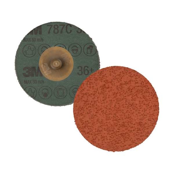 Quick-Change Sanding Disc, Abrasive Type Coated, Abrasive Material Ceramic, Backing Material Fiber, Backing Weight Y, Coating Coverage Closed, Grade Extra Coarse, Grit 36, Overall Diameter 2 in, Quick Change System TR, Series 787C, Maximum Operating Speed 30,000 RPM, Resistance Properties Tear, Color Orange