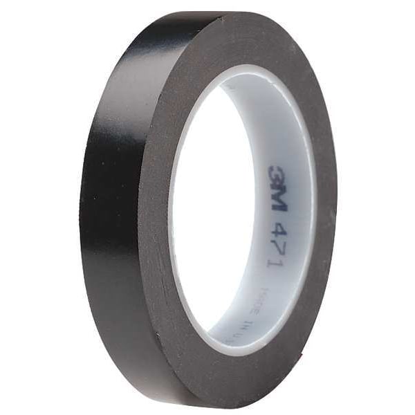 Floor Marking Tape, Continuous Roll, Solid, Black, 3/4 in, 108 ft, 5.2 mil, Vinyl, 3M(TM), Series 471, Legend No Legend, Glow In The Dark No, Retroreflective Grade Non-Reflective, Tape Core Diameter 4 3/8 in