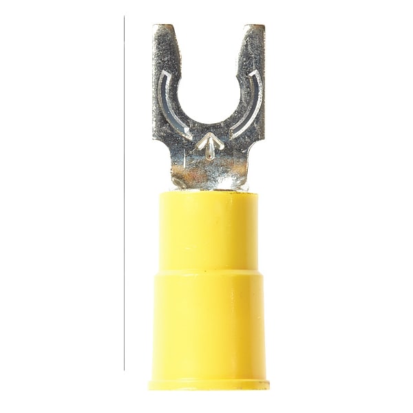 Fork Terminal, #10 Stud Size, 10 AWG, 1,000 V, Vinyl Insulated, Yellow, Crimp Termination Only