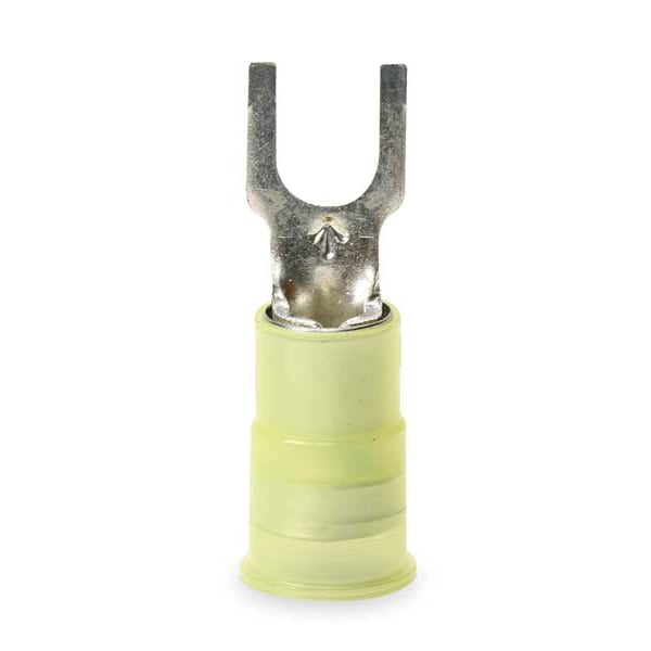 Fork Terminal, #10 Stud Size, 10 AWG, 600 V, Nylon Insulated, Yellow, Crimp Termination Only, 50 PK
