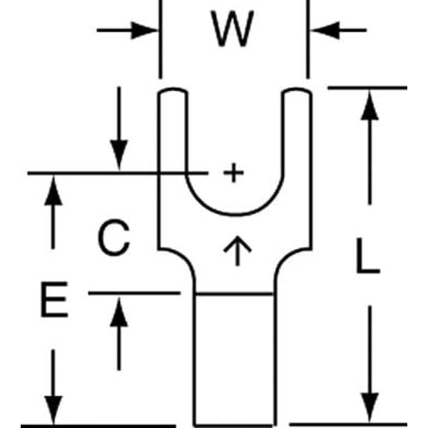 Fork Terminals, Contact Finish Tin, Contact Material Copper, Insulation Color Bare, Insulation Coverage None, Insulation Material None, Maximum Temperature 347 Degrees F, Maximum Voltage 600 V, Maximum Wire Size 14 AWG, Stud Size #10, Termination Style Crimp, RoHS Compliant Yes, Seam Style Brazed, Standards CSA Certified, UL Listed, Barrel Length 0.25 in, Connection Material Copper, Connection Type Crimp, Insulation Type Non-Insulated, Minimum Wire Size 16 AWG, Overall Length 0.7 in