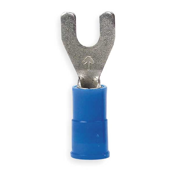 Fork Terminal, #10 Stud Size, 14 AWG, 600 V, Nylon Insulated, Blue, Crimp Termination Only, 100 PK