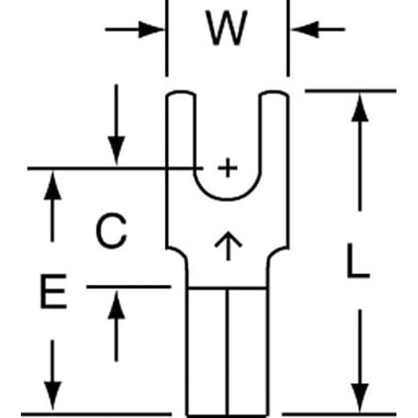 Fork Terminal, Insulation Color Bare, Stud Size #6, Standards CSA Certified, UL Listed, Connection Material Copper, Connection Type Crimp, Insulation Type Bare, Overall Length 0.73 in, Package Quantity 500