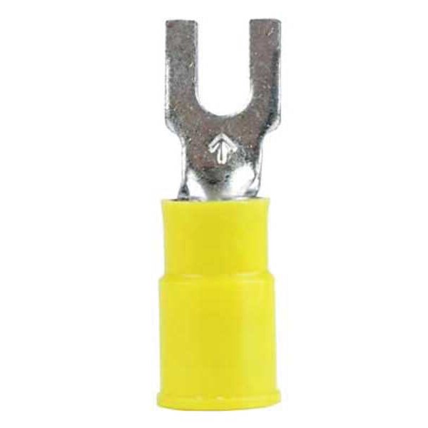 Fork Terminal, #6 Stud Size, 10 AWG, 600 V, Nylon Insulated, Yellow, Crimp Termination Only, 500 PK