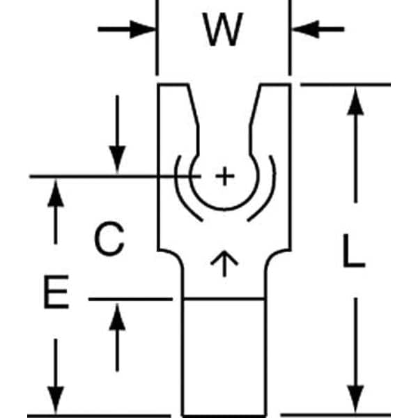 Fork Terminals, Contact Finish Tin, Contact Material Copper, Insulation Color Bare, Insulation Coverage None, Insulation Material None, Maximum Temperature 347 Degrees F, Maximum Voltage 600 V, Maximum Wire Size 14 AWG, Stud Size #6, Termination Style Crimp, RoHS Compliant Yes, Seam Style Brazed, Standards CSA Certified, UL Listed, Barrel Length 0.25 in, Connection Material Copper, Connection Type Crimp, Insulation Type Non-Insulated, Minimum Wire Size 16 AWG, Overall Length 0.68 in