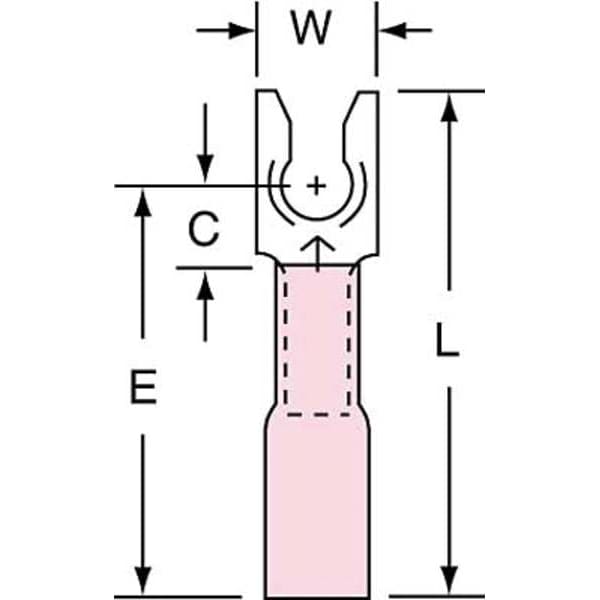 Fork Terminal, #6 Stud Size, 18 AWG, 600 V, Heat Shrink Insulated, Red, Crimp Termination Only