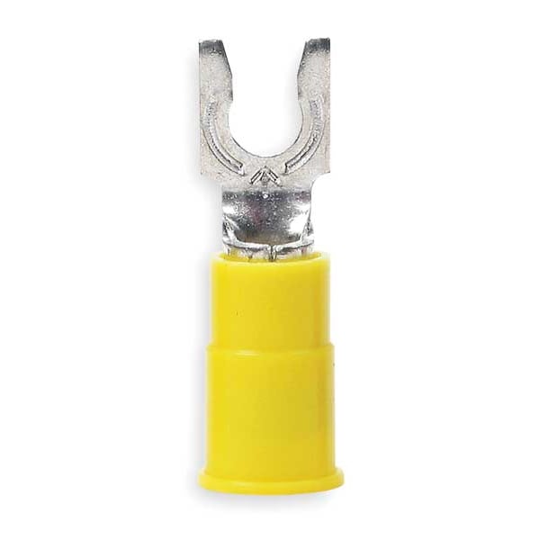Fork Terminal, #8 Stud Size, 10 AWG, 600 V, Nylon Insulated, Yellow, Crimp Termination Only, 50 PK