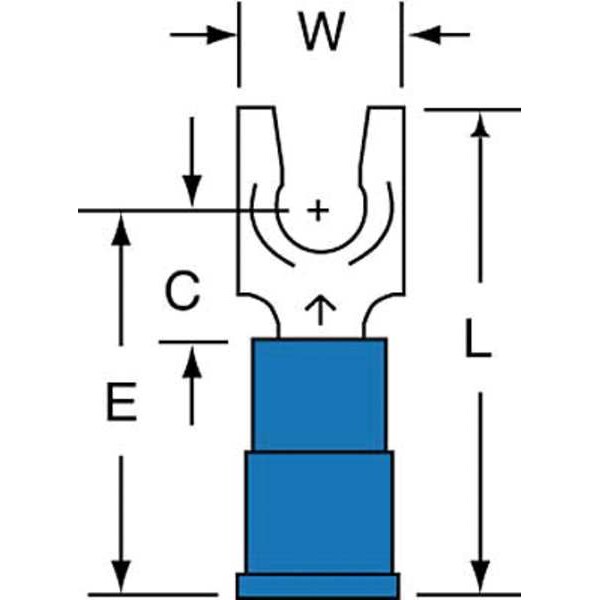 Fork Terminals, Contact Material Copper, Insulation Color Blue, Insulation Material Vinyl, Maximum Temperature 221 Degrees F, Maximum Voltage 1,000 V, Maximum Wire Size 14 AWG, Stud Size #8, Termination Style Crimp, Seam Style Butted, Standards CSA File Number LR22190, UL File Number E23438, Barrel Length 0.25 in, Barrel Style Funnel, Compatible Grainger Part Number 1A076, 2FZN3, 4X316, Compatible Manufacturer Model Number TH-440, TH-450, TR-490, Compatible with Product Type Crimp Tool