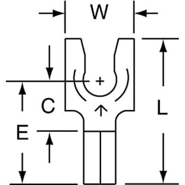 Fork Terminal, Insulation Color Bare, Stud Size #8, Standards CSA Certified, UL Listed, Connection Material Copper, Connection Type Crimp, Insulation Type Bare, Overall Length 0.68 in, Package Quantity 1000