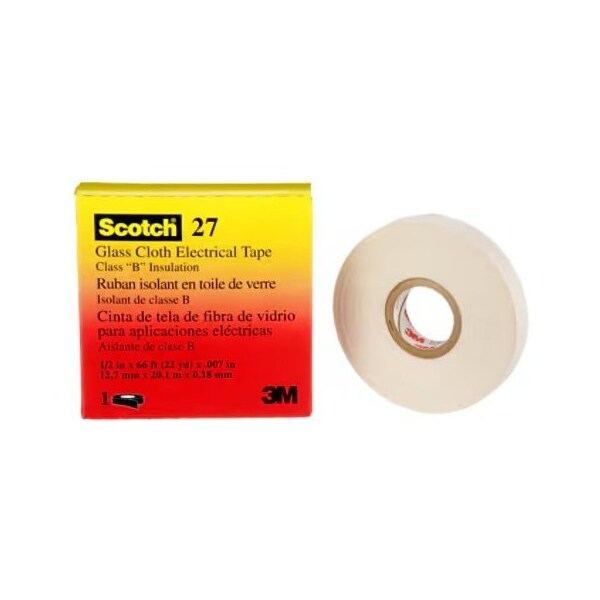3M Glass Cloth Electrical Tape 27, 1/2 in x 66 ft, 50 Rolls/Case