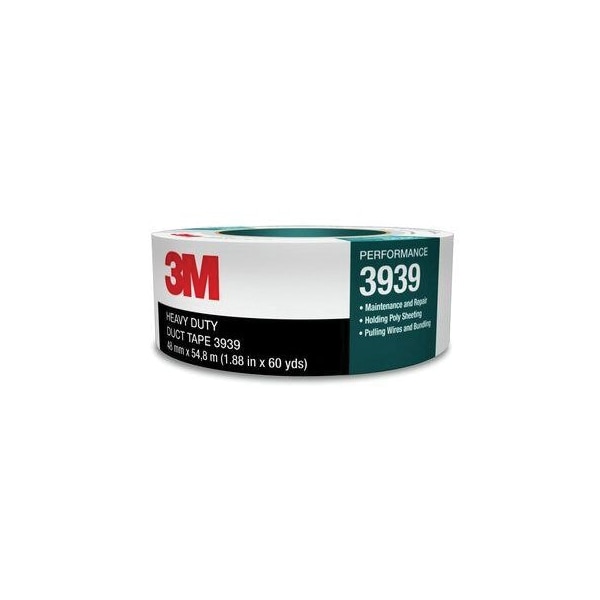 3M Heavy Duty Duct Tape 3939 has the tensile strength and adhesion for splicing, masking, patching, seaming, hanging poly sheeting, sealing PVC pipes, covering trip hazards and a host of other industrial applications. Industrial-grade duct tape for splicing, masking, patching, sealing and seaming|High tensile strength for a secure hold under stress|Thick rubber adhesive bonds to most rough and smooth surfaces for a tight seal|Silver polyethylene surface resists wear, a