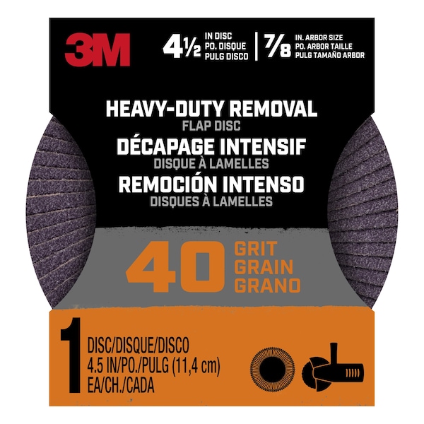 The 3M Heavy Duty Removal 7 inch Flap Disc can handle an array of removal needs. It's ideally suited for coating removal, grinding, weld removal, deburring, beveling, blending and rust removal. Leveraging industrial technology, the 3M Heavy Duty Removal 7 inch Flap Disc will cut fast and last long, allowing you to finish your power tool sanding project with a quality finish.