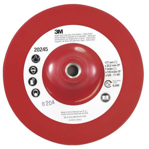 Hook-and-Loop Disc Backup Pad, Abrasive Mount Type Hook and Loop, Abrasive Mounting Quick Change System Not Applicable, Connector Size 5/8 In.-11, Connector Type Threaded Hole, Backup Pad Shape Round, Device Material Foam, Density Extra Hard, Maximum Operating Speed 8,500 RPM, Number of Vacuum Holes Non-Vacuum, Color Red, Overall Length Not Applicable, Overall Width 7 in, Overall Diameter 7 in, Overall Thickness Not Applicable, Product Type Disc Backup Pad