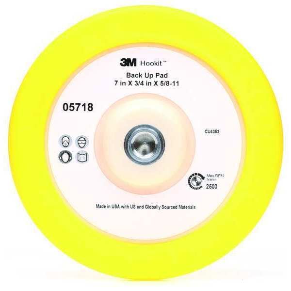 Hook-and-Loop Disc Backup Pad, Product Type Pad, Backing Pad Type Hook-and-Loop, Attachment Not Applicable, Color Yellow, Material Rubber, Maximum Speed 3,000 RPM, Texture Not Applicable, Thickness 1/2 in, Outside Diameter 7 in, Compatible Surface Material Not Applicable, Compatible Tool Type Rotary Sanders, Compatible with Manufacturer Model Number Not Applicable, Application Not Applicable, Center Hole Thread Size 5/8 In.-11, Compatible with Grainger Part Number 2AZC9, 2EXY6, 2EXY9