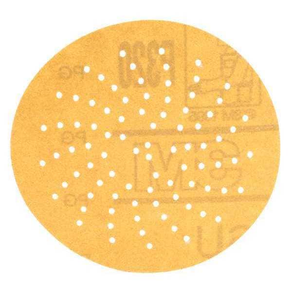 Hook-and-Loop Sanding Disc, Abrasive Type Coated, Abrasive Material Aluminum Oxide, Backing Material Paper, Backing Weight A, Coating Coverage Open, Grade Very Fine, Grit P320, Overall Diameter 3 in, Series 216U, Resistance Properties Load, Number of Vacuum Holes Multi-Hole, Color Gold, Package Quantity 100