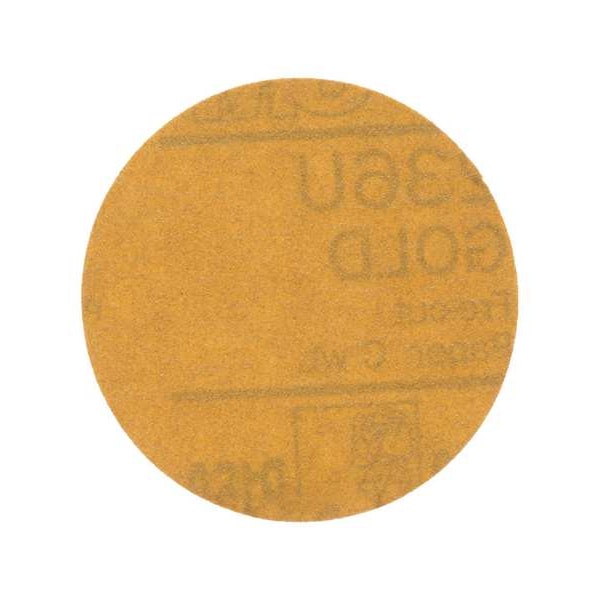 Hook-and-Loop Sanding Disc, Abrasive Type Coated, Abrasive Material Aluminum Oxide, Backing Material Paper, Backing Weight C, Coating Coverage Open, Grade Coarse, Grit P150, Overall Diameter 3 in, Series 236U, Resistance Properties Load, Number of Vacuum Holes Non-Vacuum, Color Gold, Package Quantity 200
