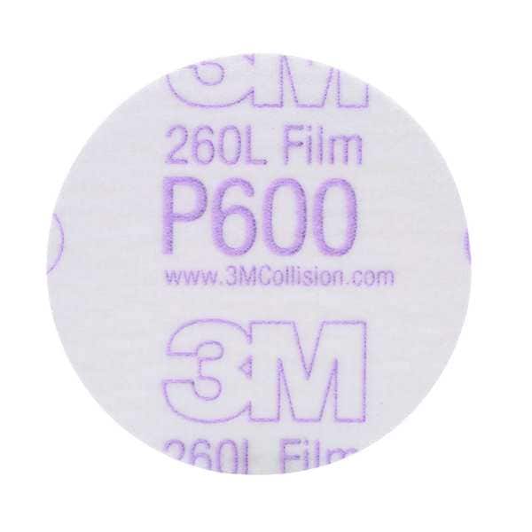 Hook-and-Loop Sanding Disc, Abrasive Type Coated, Abrasive Material Aluminum Oxide, Backing Material Film, Backing Weight E, Coating Coverage Closed, Grade Fine, Grit P600, Overall Diameter 3 in, Series 260L, Resistance Properties Tear, Number of Vacuum Holes Non-Vacuum, Color White, Package Quantity 200