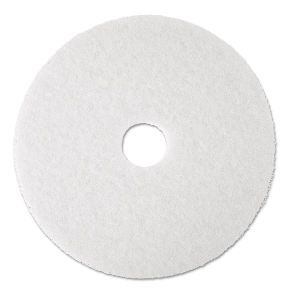 3MTM White Super Polish Pad 4100 is used for light cleaning under automatic scrubbers and removes soil and scuff marks with minimal dulling of finish. Uniform distribution of fine cleaning particles throughout the pad's fibers, not just on the surface, distinguishes it from much of the competition. Durable, conformable polyester fibers provide maximum pad-to-floor contact, and open construction resists loading and clogging. For use with rotary and automatic floor machines running at low speed (175 to 600 rpm). Use for light daily cleaning, spray buffing, and dry buffing soft finishes. This polishing pad is also used on wood floors. The pad is reversible.