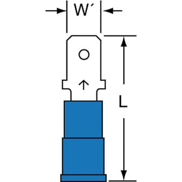 Wire Disconnect, Contact Finish Tin, Contact Material Copper, Disconnect Style Quick Disconnect, Insulation Color Blue, Insulation Coverage Partial Coverage, Insulation Material Nylon, Maximum Temperature 221 Degrees F, Minimum Wire Size 16 AWG, Maximum Wire Size 14 AWG, Maximum Voltage 600 V, Tab Thickness 0.02 in, Tab Width 0.187 in, Terminal Type Tab, Termination Style Crimp, RoHS Compliant Yes, Seam Style Butted, Standards CSA Certified, UL Listed, Barrel Inside Diameter 0.08 in