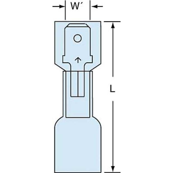 Wire Disconnect, Contact Finish Tin, Contact Material Copper, Disconnect Style Quick Disconnect, Insulation Color Blue, Insulation Coverage Full Coverage, Insulation Material Nylon with Heat Shrink, Maximum Temperature 221 Degrees F, Minimum Wire Size 16 AWG, Maximum Wire Size 14 AWG, Maximum Voltage 1,000 V, Tab Thickness 0.032 in, Tab Width 0.25 in, Terminal Type Tab, Termination Style Crimp, Seam Style Butted, Standards CSA Certified, UL Listed, Barrel Inside Diameter 0.085 in