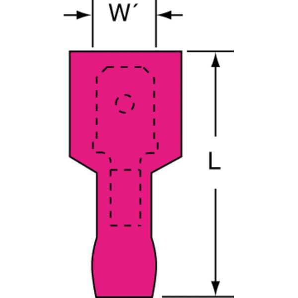 Wire Disconnect, Contact Finish Tin, Contact Material Copper, Disconnect Style Quick Disconnect, Insulation Color Red, Insulation Coverage Full Coverage, Insulation Material Nylon, Maximum Operating Temperature 221 Degrees F, Minimum Wire Size 22 AWG, Maximum Wire Size 18 AWG, Maximum Voltage 1,000 V, Tab Thickness 0.032 in, Tab Width 0.25 in, Terminal Type Tab, Termination Style Crimp, Seam Style Butted, Standards CSA Certified, EU Compliant, UL Listed, Barrel Inside Diameter 0.065 in