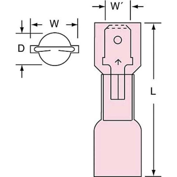 Male Disconnect, Insulation Color Red, Terminal Type Disconnect, Standards CSA Certified, RoHS Compliant, UL Listed, Insulation Type Nylon, Overall Length 1.2 in, Package Quantity 250