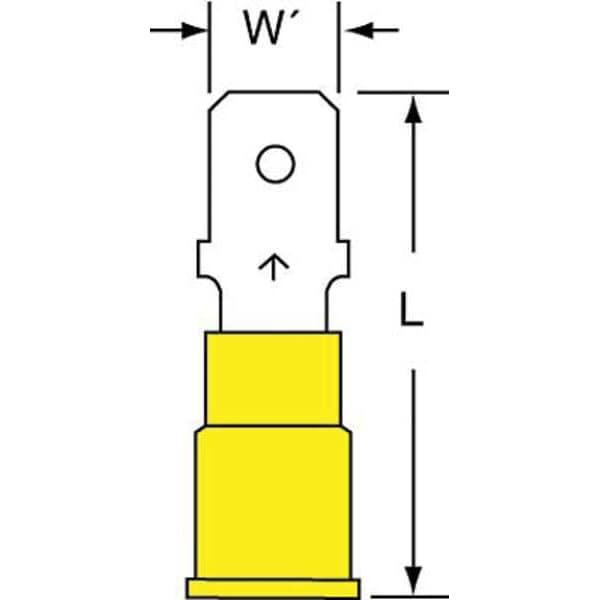 Wire Disconnect, Contact Finish Tin, Contact Material Copper, Disconnect Style Quick Disconnect, Insulation Color Yellow, Insulation Coverage Full Coverage, Insulation Material Nylon, Maximum Temperature 221 Degrees F, Minimum Wire Size 12 AWG, Maximum Wire Size 10 AWG, Maximum Voltage 600 V, Tab Thickness 0.032 in, Tab Width 0.25 in, Terminal Type Tab, Termination Style Crimp, RoHS Compliant Yes, Seam Style Butted, Standards CSA Certified, UL Listed, Barrel Inside Diameter 0.15 in