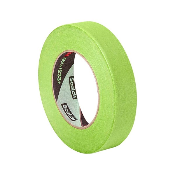 3M High Performance Green Masking Tape 401+ was designed to deliver sharp paint lines and is ideal for critical paint masking applications in automotive, specialty vehicle and industrial markets where strong holding and high temp performance is required. The high-strength green crepe paper backing conforms to irregular surfaces, resists bleed-through from most industrial paint systems, improves visibility and accuracy during the paint masking process, and helps achieve super-sharp paint lines. Featuring a proprietary solvent-free adhesive, the tape sticks instantly to most surfaces, including metal, rubber, glass and plastic, while removing cleanly in one piece. Withstands surface temperatures up to 250 F / 121 C for 30 minutes.