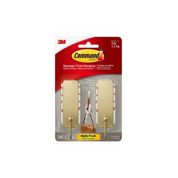 Command Medium Satin Brass Hooks 2 Hooks 4 Strips