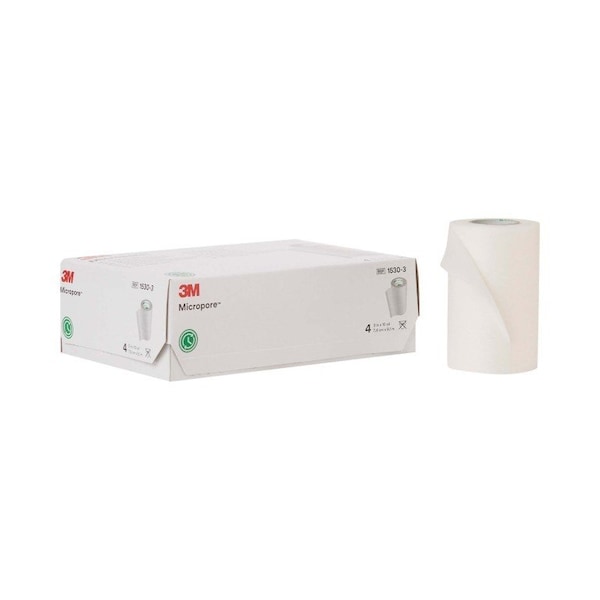 Medical Tape 3M Micropore White 3 Inch X 10 Yard Paper NonSterile 3M Micropore medical tape has a quality adhesive for good adhesion to the skin It leaves minimal adhesive residue for quick removal The white tape is water-resistant and can adhere to damp surfaces It conforms well to cover hard to dress areas The Micropore paper tape is hypoallergenic and safe to use on sensitive skin It's highly breathable to help maintain proper skin condition Each box has 4 rolls of 3 inch x 10 yard medical tape This tape is known in hospitals as 3M Micropore surgical tape