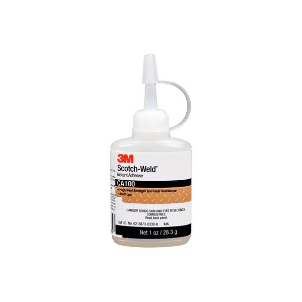 Our 3MTM Scotch-WeldTM Instant Adhesive CA100 is a glue that is easily applied with a thin bond line from a squeeze bottle and cures quickly. This cyanoacrylate adhesive is dispensed from a flexible container; pinch a precise drop or squeeze for a steady bead. _x000D_