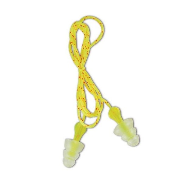 3M Next TriFlange corded earplugs have a unique TriFlange design to conform to the shape of the user's ear canal, making it a custom fit The soft, pliable, translucent flanges form a triplelevel seal against noise They are available with cloth or nylon cords These plugs have a NRR 26dB 100 pairs per dispenser