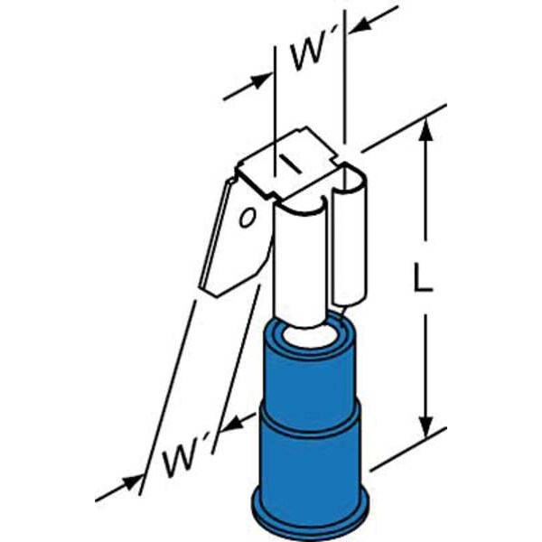 Wire Disconnect, Contact Finish Tin, Contact Material Brass, Disconnect Style Piggyback Quick Disconnect, Insulation Color Blue, Insulation Coverage Partial Coverage, Insulation Material Nylon, Maximum Temperature 221 Degrees F, Minimum Wire Size 16 AWG, Maximum Wire Size 14 AWG, Maximum Voltage 300 V, Tab Thickness 0.032 in, Tab Width 0.25 in, Terminal Type Socket/Tab, Termination Style Crimp, RoHS Compliant Yes, Seam Style Butted, Barrel Inside Diameter 0.09 in, Barrel Style Insulation Grip