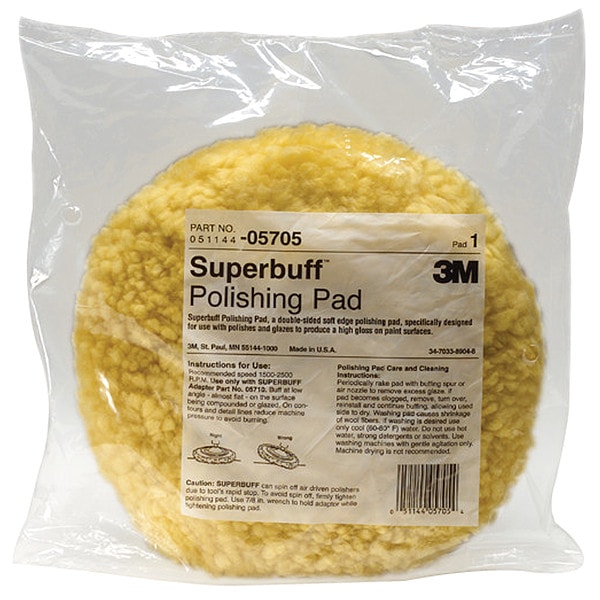 Polishing Pad, Double Sided, Product Type Pad, Backing Pad Type Not Applicable, Attachment Unthreaded Center Hole, Color Yellow, Material Wool, Maximum Speed 2,000 RPM, Texture Heavy Nap, Thickness 2 in, Outside Diameter 8 in, Compatible Surface Material Paint, Compatible Tool Type Polishers, Compatible with Manufacturer Model Number Not Applicable, Application Polishing