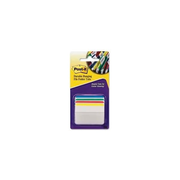 Post-it durable hanging file folder tabs, 2" angled lined, primary colors, 24 tabs/pack post-it durable hanging file folder tabs make it simple to name and label files. Great for storing and retrieving documents and displaying an organized, professional image. Tabs are angled for easy viewing from above file drawers. Tough, long-lasting 2" tabs withstand repeated use. Each tab is easy to write on, apply and reposition and offers plenty of space for labeling. larger quantity quotes available. Please call 1-888-978-7759. this product arrives to most customers in 2-3 business days.