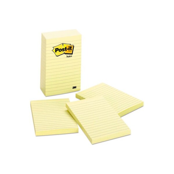 Post-it Note Pads 6605PK, 4" x 6", Canary Yellow, 30 Sheets, 5/Pack