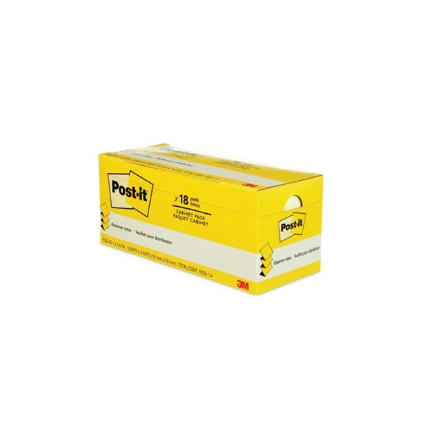 Post-it Dispenser Notes are accordion-style notes specially designed to work in Post-it Note Dispensers. With these notes, you'll always have a note nearby to capture great ideas. Unique adhesive is designed to work on paper or in planners. Use for notes or reminders to yourself or others. Classic Canary Yellow color helps your notes stand out. Post-it Dispenser Notes are recyclable. Cabinet PackIncludes 18 pads in a convenient tray to help you keep your supplies neat and organized. Pad Type: Pop-Up; Shape: Square; Colors: Canary Yellow; Color Family: Yellow.