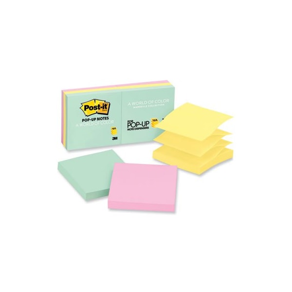 Post-it Dispenser Notes, 3 x 3, are accordion-style notes specially designed to work in Post-it Note Dispensers. With these notes, you'll always have a note nearby to capture great ideas. Unique adhesive is designed to work on paper or in planners. Use for notes or reminders to yourself or others. Great for office, school or work area. Post-it Dispenser Notes are recyclable. Beachside Cafe Collection ColorsDelicious colors inspired by a beautiful break at the beach. Pad Type: Pop-Up; Shape: Square; Colors: Beachside Cafe Collection; Color Family: Multicolor.