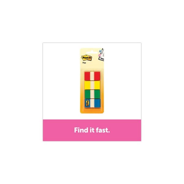 Find it fast with Post-it Flags in bright eye-catching colors that get noticed. They make it simple to mark or highlight important information in textbooks, calendars, notebooks, planners and more. They stick securely, remove cleanly and come in a wide variety of colors. Draw attention to critical items or use them to index, file or color code your work, either at home, work or in the classroom. Try with Post-it Notes for the ultimate study duo. Colors: Assorted Primary; Color Family: Multicolor; Dispenser: Pop-Up; Assortment: Blue; Green; Red; Yellow.