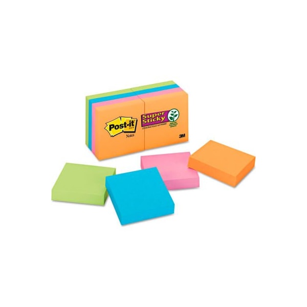 Post-it super sticky note pads 6228ssan, 2" x 2", electric glow, 90 sheets, 8/pack post-it super sticky notes hold stronger and longer than most self-adhesive notes so you can be sure that your message gets through. Have the confidence to leave important messages on multiple surfaces including computer monitors, office doors, and walls. Notes stick to almost any surface and don't fall off. The electric glow collection is full of hot colors that will grab your attention. Paper used comes from well-managed forests where trees are replanted. Each pad includes 90 sheets. features marrakesh collection holds stronger and longer, yet removes cleanly small notes go a long way these colors convey the genuine energy and movement found in this desert jewel 90 sheets/pad larger quantity quotes available. Please call 1-888-978-7759. this product arrives to most customers in 2-3 business days.